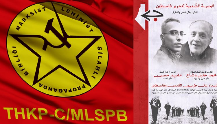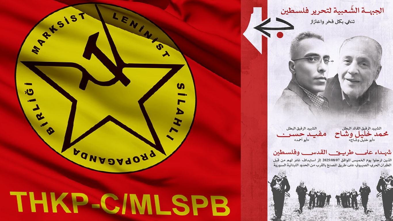 Biz THKP-C/MLSPB olarak, soylu Filistin direnişinin iki kahramanının şehadetini Filistin’in işgalci düşmandan temizlenmesi için sonuna kadar savaş çağrısı olarak karşılıyoruz. İki şehid yoldaşın yasını tutuyor, FHKC liderliğine, iki yoldaşın ailelerine ve halk Cephesindeki tüm yoldaşlara taziyelerimizi iletiyoruz.